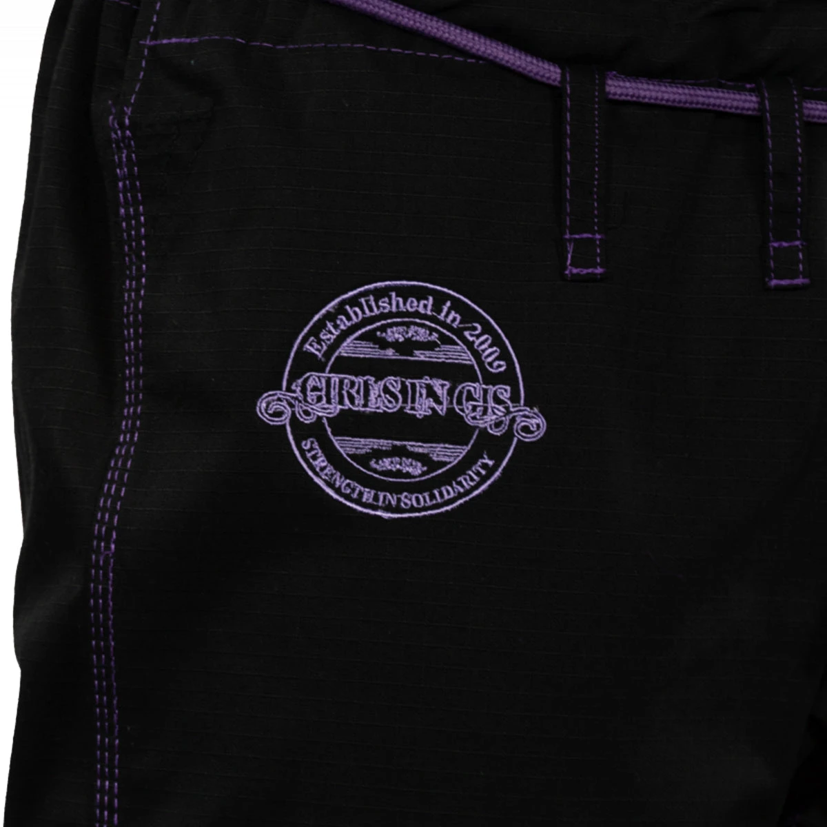 This authentic & IBJJF Approved BJJ Gi was designed for serious performance and as a tribute to women who love the sport. With all the premium features of the standard FUJI Sekai, this gi features a women’s cut (tapered waist, sleeves, and pants), and is fully decorated with custom Girls in Gis embroidery, details and inside printing.
