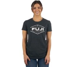 FUJI Grappling Division Women’s T-Shirt is a 60% combed ringspun cotton 40% poly t-shirt for an extra soft feel. FUJI Grappling division graphics on the front and a embroidered marrow FUJI icon patch on the sleeve.