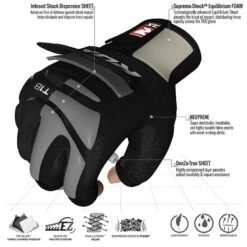 - Impact absorbing foam over knuckles, thumb and back of wrist