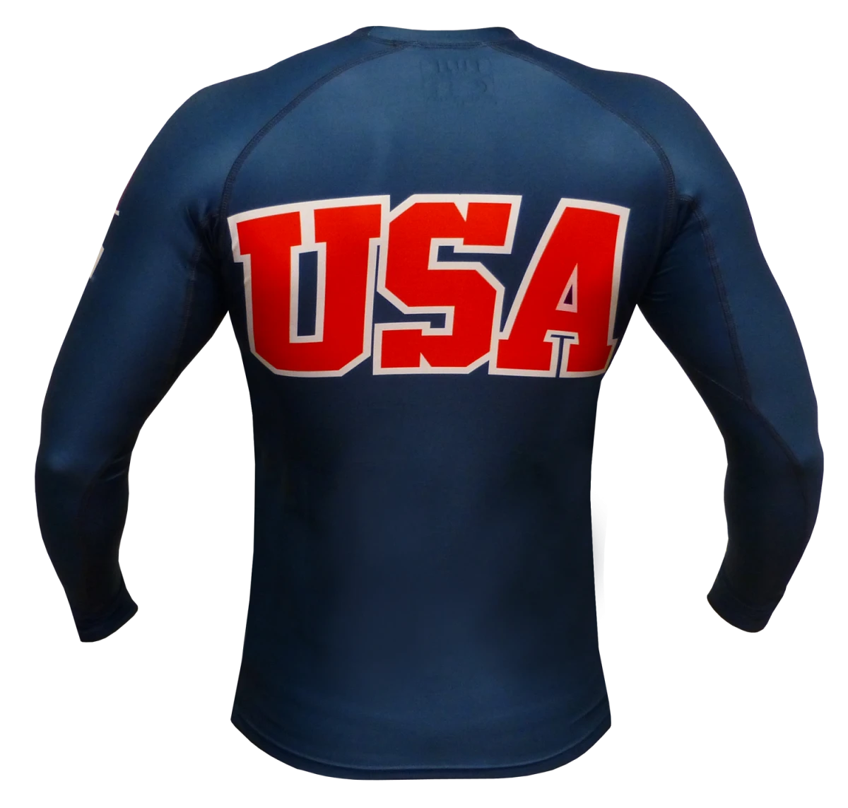 Show off your American pride while training in comfort and style with FUJI’s NEW USA Rash Guard! This fully sublimated long sleeve rash guard features a bold USA graphic on the front and the back that will never crack, peel or fade. Made of high quality anti-microbial fabric with reinforced stitching for long-lasting durability and extreme comfort.